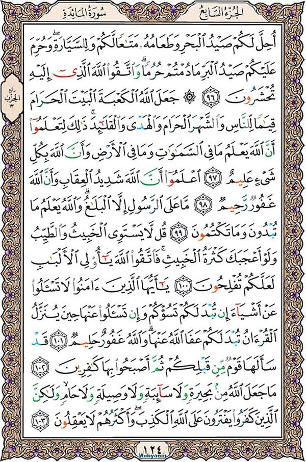 قرآن تبيان- جزء 7 - حزب 13 - سوره مائده - صفحه 124