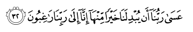 32 - امید ‌است‌ ‌که‌ پروردگارمان‌ بهتر ‌از‌ ‌آن‌ ‌را‌ ‌به‌ ‌ما عوض‌ دهد، [زیرا] ‌ما ‌به‌ پروردگارمان‌ روی‌ آورده‌ایم‌